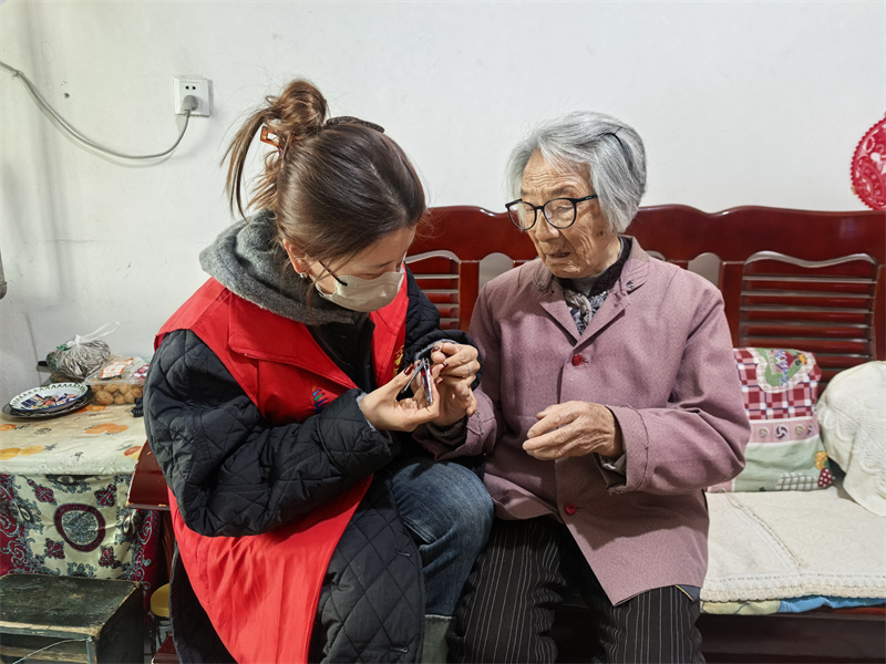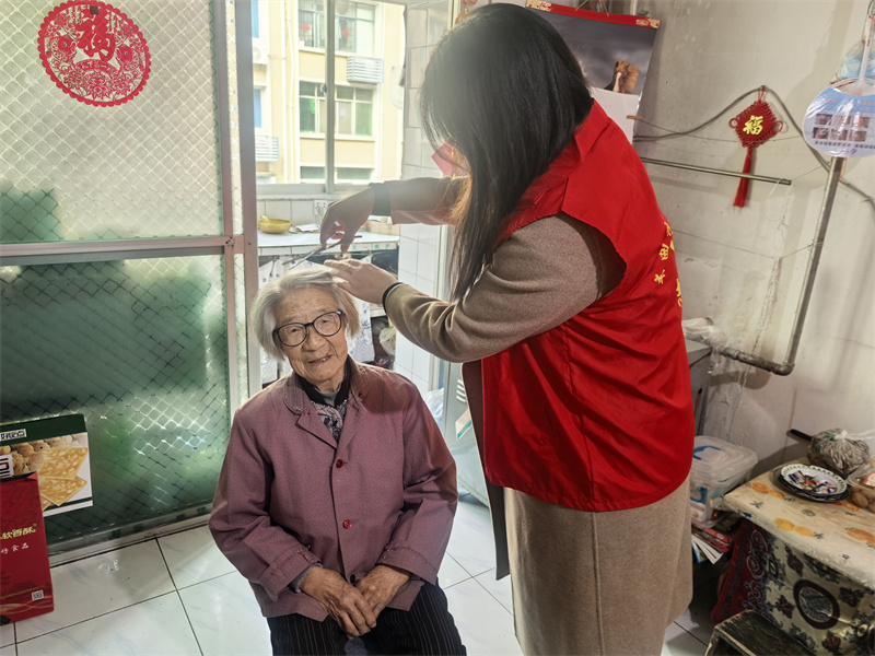 活動中,志愿者們先后走進85歲獨居老人章玉華和81歲獨居老人唐朝科家中。大家分工明確,配合默契,手持掃帚清掃地面,擦拭門窗玻璃,幫助老人整理房間雜物。經過一番辛勤勞動,家中原本積塵的角落變得干凈整潔,居室環境煥然一新。在做好基礎衛生清潔的同時,志愿者們更注重細節關懷。他們化身“托尼老師”,搬來小板凳為老人理發,耐心地為老人修剪指甲。大家一邊陪老人拉家常,一邊細致地服務,讓平日里冷清的小屋充滿了歡聲笑語。此外,志愿者們還主動檢查了老人家中水電設施,排查安全隱患,切實保障老人的居家安全。
